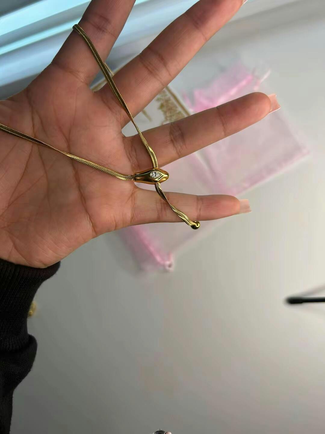 This Snake necklace combines sleek design with expert craftsmanship, offering a distinctive accessory that enhances any outfit. Its smooth, sinuous form mimics the elegant movement of a snake, providing a bold yet refined statement piece. Crafted with attention to detail, this necklace is perfect for those seeking a unique and sophisticated addition to their jewelry collection.